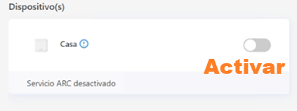 1.7 En el listado debajo de CRA, tendremos los dispositivos. Se debe activar el servicio de CRA en el dispositivo.