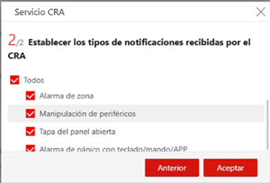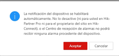 1.10 En la ventana final, se indica que la notificación del dispositivo se habilitará automáticamente para permitir la recepción de eventos del panel. Hagan clic en 'Aceptar'.