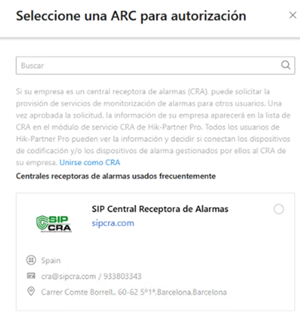 1.5 En el campo de búsqueda, escriban cra@sipcra.com o SIP Central Receptora de Alarmas para buscar la CRA.